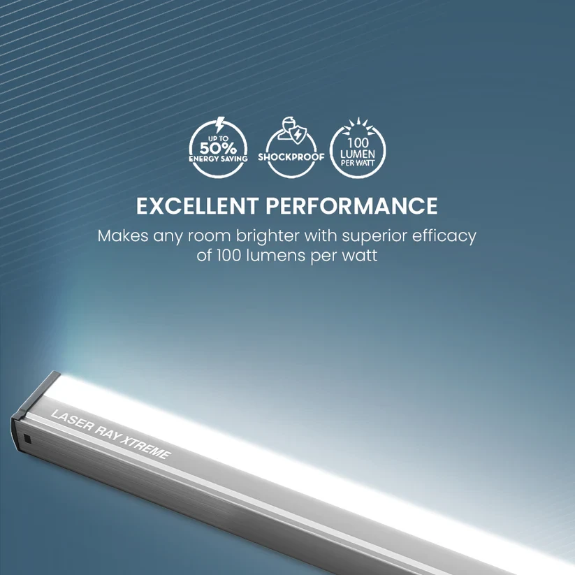 Illuminate your space with our 40W Laser Ray Xtreme Batten Lights. Boasting a slim and sleek design, these lights bring modern elegance to any setting. Experience superior brightness with high lumen efficacy, ensuring a well-lit environment that seamlessly blends style with functionality.