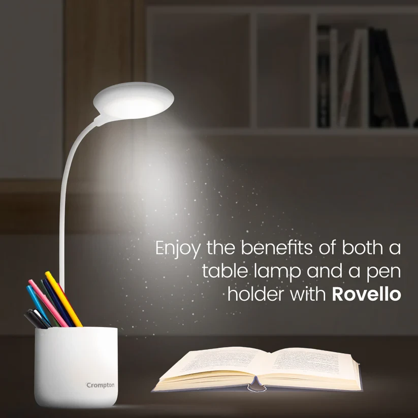 Introducing the Rovello Table Lamp, a beacon of modern convenience. Equipped with Powersure backup technology, it ensures your workspace remains illuminated even during power outages. Backed by a reliable 1-year warranty, it's built to last. With its low power consumption and USB-powered design, it's an eco-friendly choice. The 3-step dimming option customizes your lighting, while the built-in pen and mobile holder add a touch of functionality to your space.