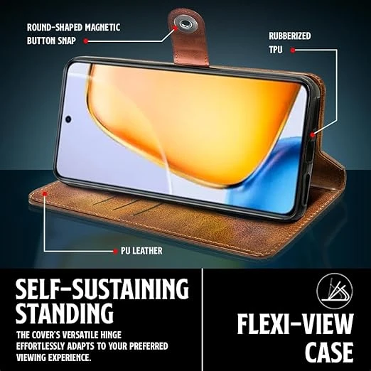 WOW IMAGINE Shock Proof Flip Cover Back Case Cover for Oppo A3x 5G | A3x 4G | A3 5G (Flexible | Leather Finish | Card Pockets Wallet & Stand