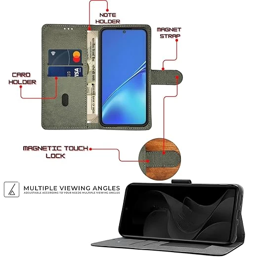 Click to see full view FLIP Cover Compatible with VIVO Y11 5G | Premium Vintage Leather Look Retro Wallet Case | Magnetic Lock | Card Holder & Stand | Full Protection Mobile Cover
