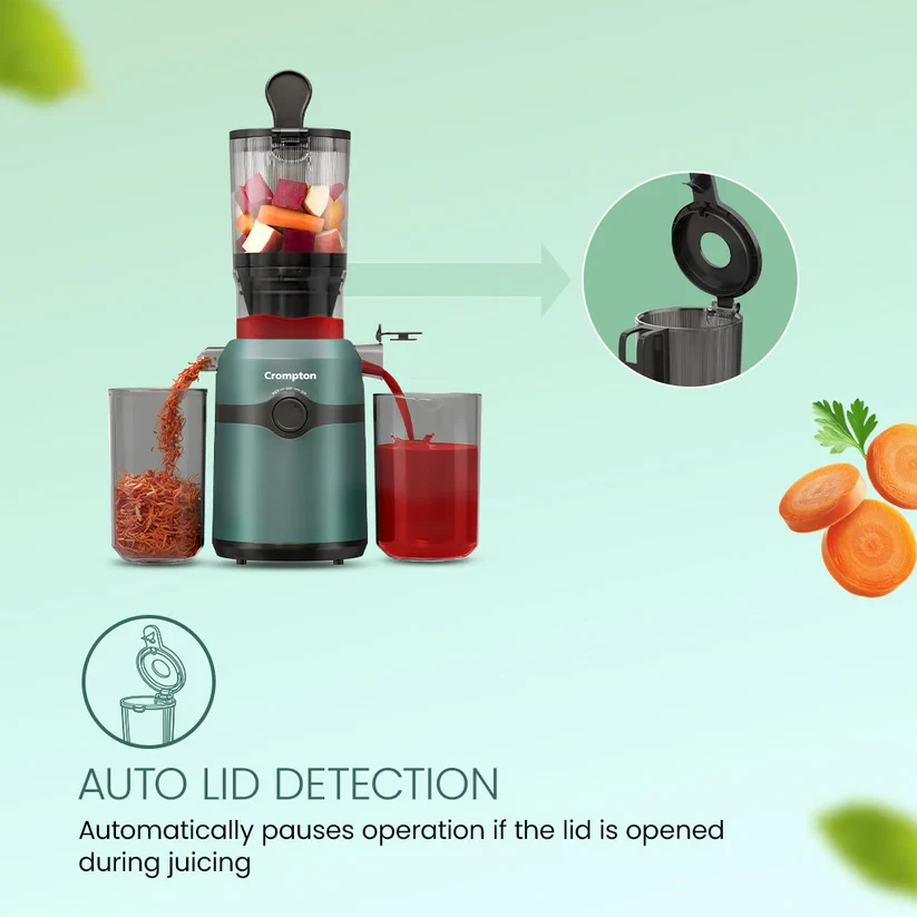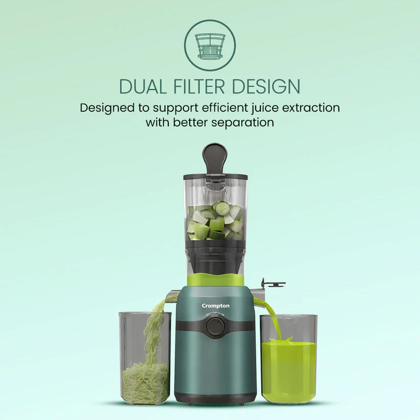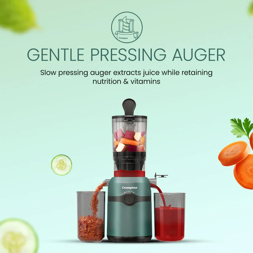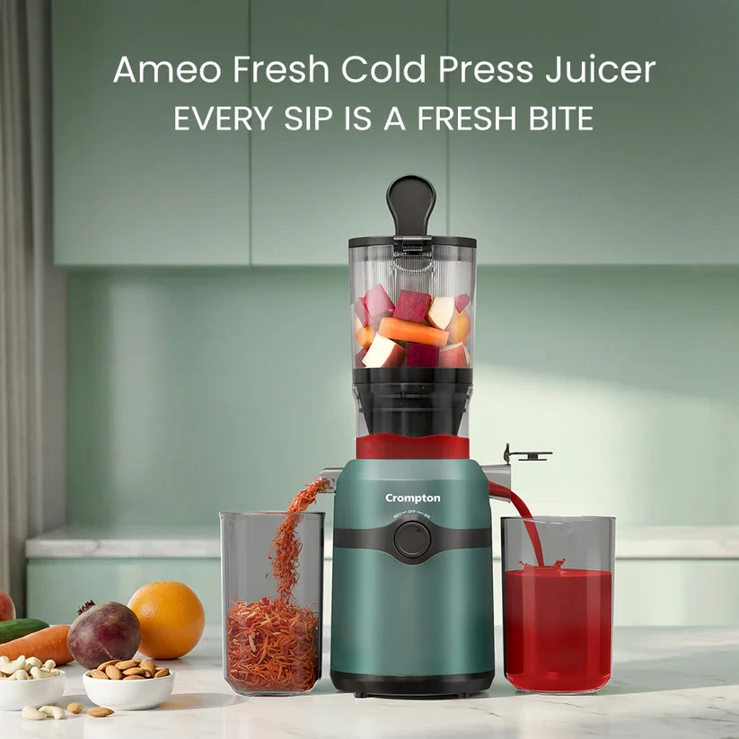 Make healthy living convenient with the Crompton Ameo Fresh Cold Press Juicer. Its slow cold-press technology helps retain up to 90% nutrition, vitamins, and antioxidants. The wide 108 mm mouth lets you add whole fruits and vegetables with minimal chopping, saving time and effort. Whether it’s fruits, vegetables, or creamy nut milks, Ameo Fresh handles it all with ease. With a simple 3-part assembly, it’s easy to use, clean, and maintain, even for daily juicing. If you want nutritious juice with less prep and less mess, the Ameo Fresh Cold Press Juicer fits right into your everyday routine.