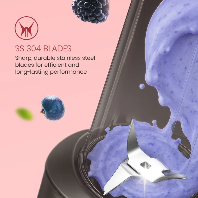 Enjoy quick and smooth blending with the Crompton Ameo Fresh Nutri Blender. Its powerful 400 W motor and SS 304 vortex blades ensure lump-free blending, whether you’re making smoothies, shakes, chutneys, or dry mixes. Designed for daily convenience, it features a secure locking system for safe use and easy-to-clean parts that are quick to wash, use, and store. The sipper cap and storage lid make it ideal for on-the-go lifestyles. Compact, reliable, and versatile, the Ameo Fresh Nutri Blender is a great choice for fast, hassle-free food preparation every day.