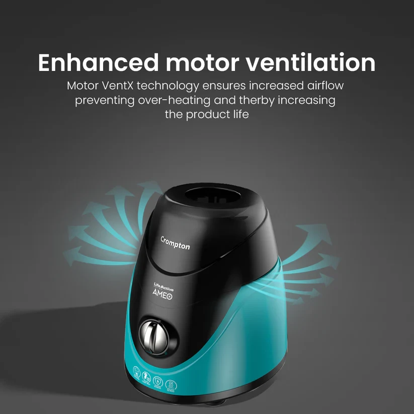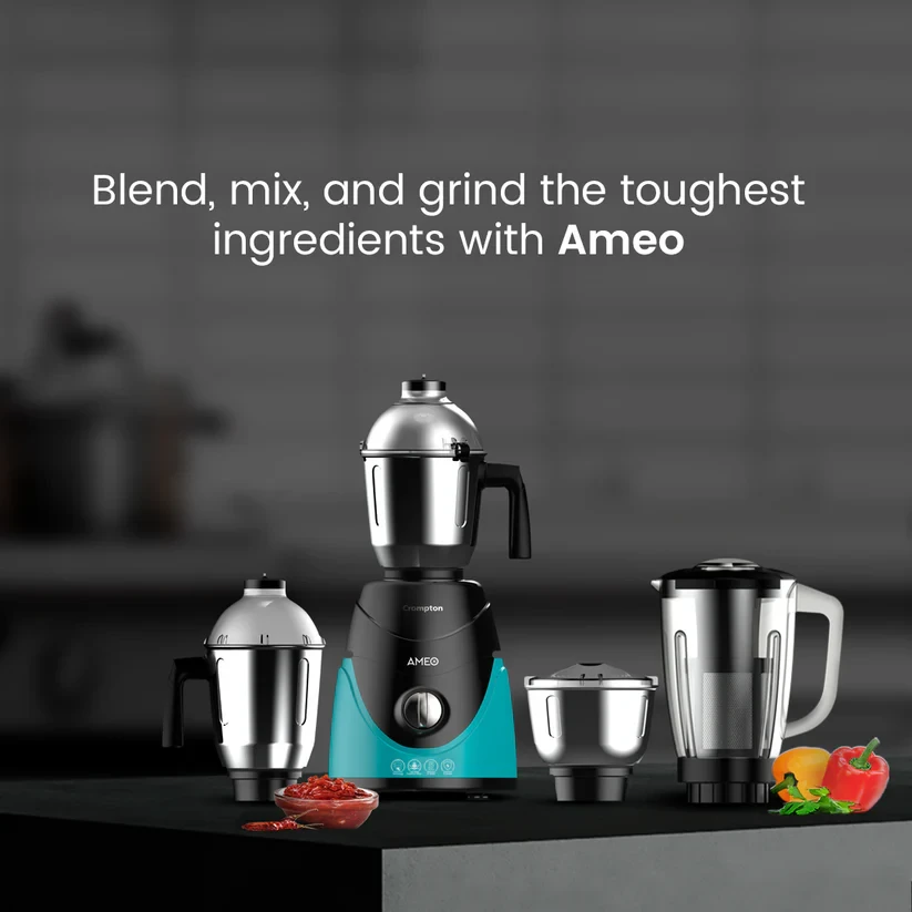 For finest grinding experience get the Cromoton Ameo mixer gridner. It comes with three functions: grinding, mixing, and juicing. The mixer grinder is equipped with a 750-watt MaxiGrind technology motor that can grind even the hardest ingredients like turmeric and entire black gram. For safety, the motor comes with an overload protection feature. It comes with suction rubber feet for a sturdy grinding experience and premium finish that adds to the aesthetic of your kitchen.