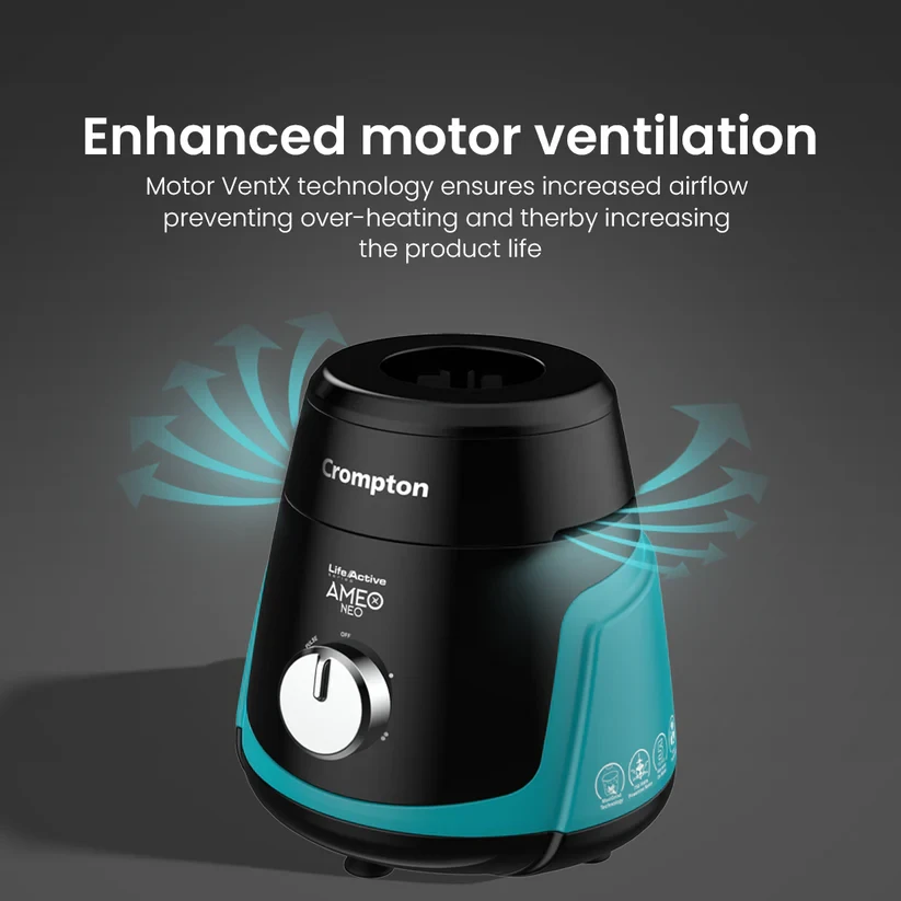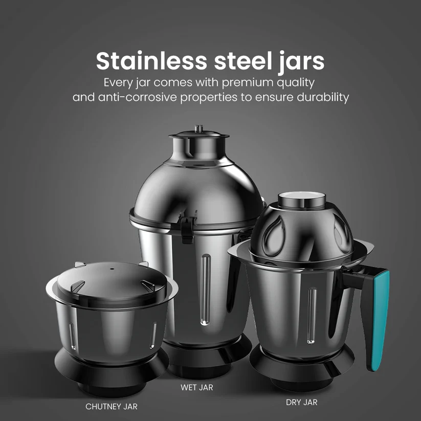 For finest grinding quality get the Cromoton Ameo Neo mixer. It comes with three functions: grinding, mixing, and juicing. It has a 750-watt MaxiGrind technology motor that can grind even the hardest ingredients like turmeric and entire black gram or even juicing. For safety, the motor comes with an overload protection. It comes with suction rubber feet for a sturdy grinding experience.