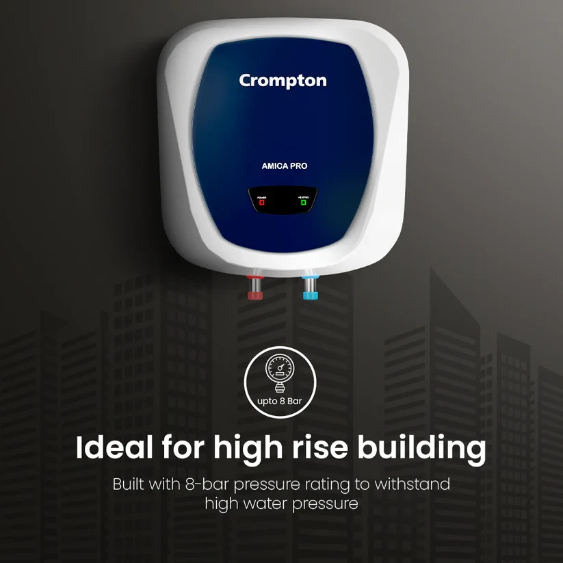Imagine starting your day with a refreshing hot shower that instantly energizes you, thanks to Crompton's Amica Pro Storage Water Heater. Whether it's a chilly winter morning or you just need to unwind after a long day, the Amica Pro ensures you have hot water at your fingertips, all year round. This state-of-the-art water heater offers energy efficiency, rapid heating with a 2000W element, and a higher storage capacity, making it the perfect addition to your home. Enhanced with Nano Polybond technology and a durable glass lined coated tank, it resists corrosion and scale formation. With additional benefits like hard water protection, universal fitment, and zero leakage, the Amica Pro is the perfect blend of style, safety, and reliability for your home.