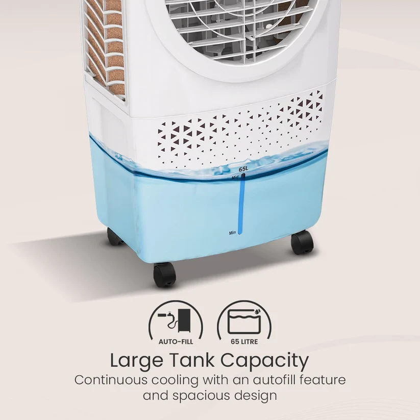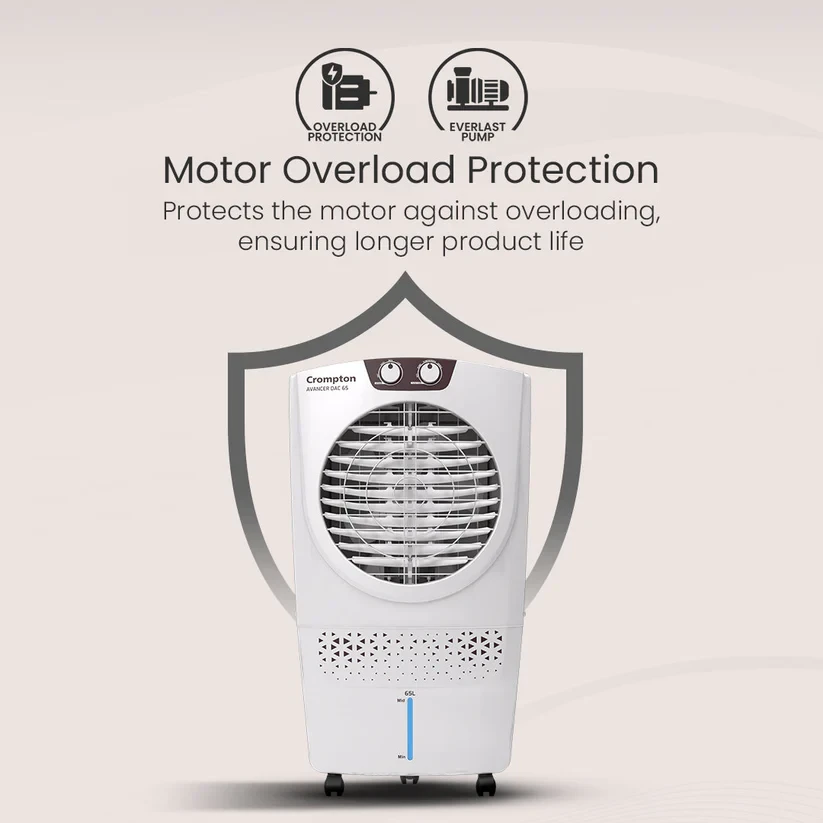 Stay cool and refreshed even on the hottest days with the Crompton Avancer Desert Air Cooler. Designed for superior cooling, it features a dynamic 18 inch blade and a powerful 4-way air delivery system that ensures every corner of your space stays comfortably cool. Its high-density cooling pads efficiently retain moisture, locking in the coolness for longer. With a spacious 65-litre water tank, you can enjoy uninterrupted cooling without frequent refills. The Avancer Desert Air Cooler delivers a consistently refreshing experience, making every moment more comfortable
