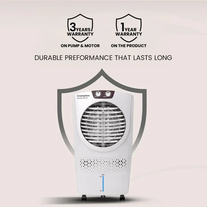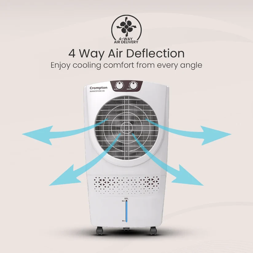 Stay cool and refreshed even on the hottest days with the Crompton Avancer Desert Air Cooler. Designed for superior cooling, it features a dynamic 18 inch blade and a powerful 4-way air delivery system that ensures every corner of your space stays comfortably cool. Its high-density cooling pads efficiently retain moisture, locking in the coolness for longer. With a spacious 65-litre water tank, you can enjoy uninterrupted cooling without frequent refills. The Avancer Desert Air Cooler delivers a consistently refreshing experience, making every moment more comfortable