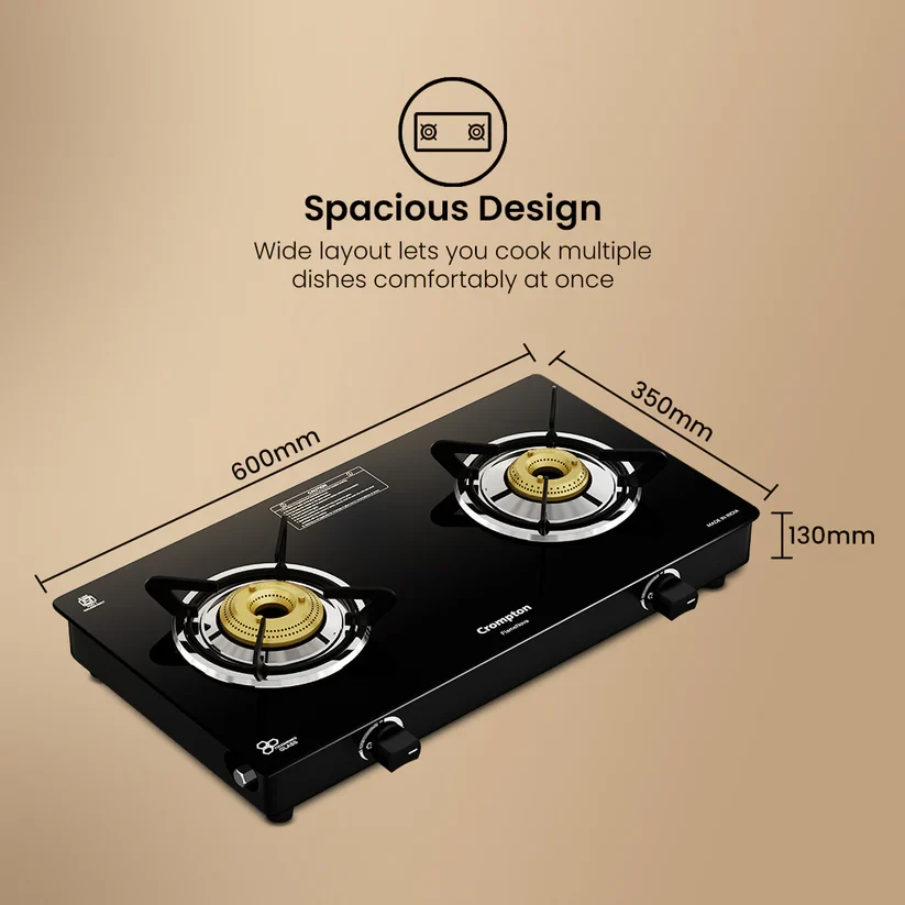 | Model Name | Crompton FlameNova 2 Burner 60 cm Glass Cooktop |