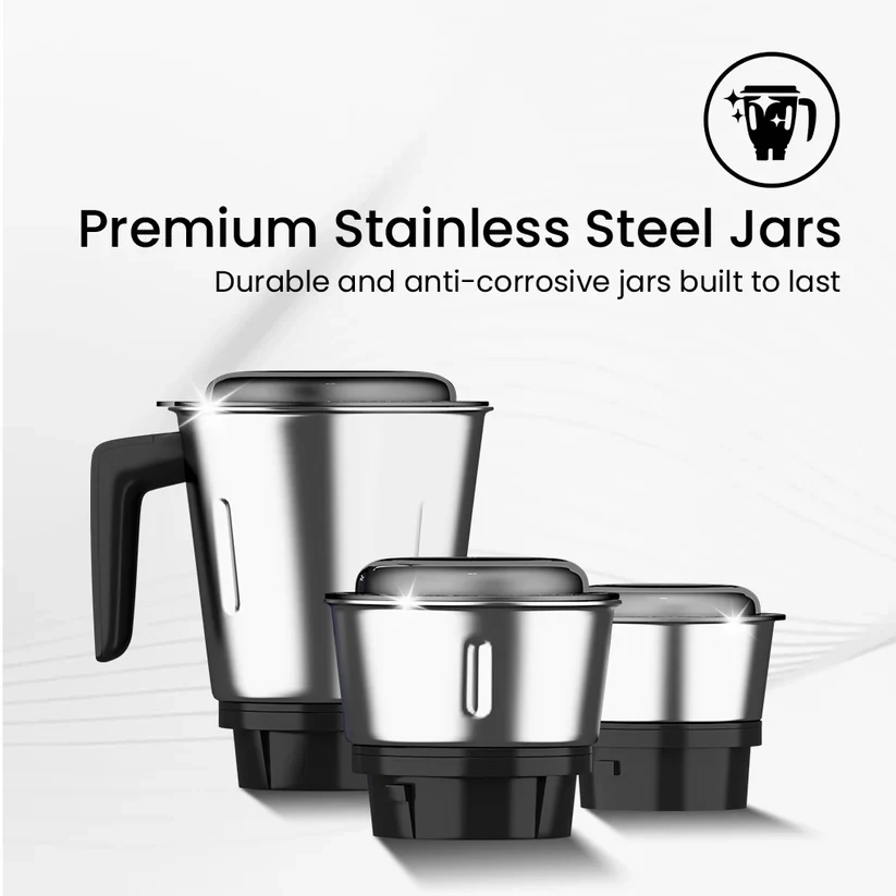 Upgrade your kitchen with the Crompton Duro Elite 1000 , a powerful companion built to make everyday cooking effortless. Its 1000W motor takes on everything from tough spices to smooth batters in seconds, so you spend less time grinding and more time enjoying your meals. What makes it even better is the long-lasting build and leak-proof lids, so you can enjoy a truly hands-free, mess-free experience. Combined with sharp blades for superior grinding and sleek, glossy finish for a touch of style, the Crompton Duro Elite 1000 is as dependable as it is elegant.