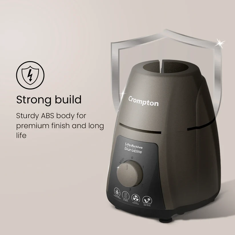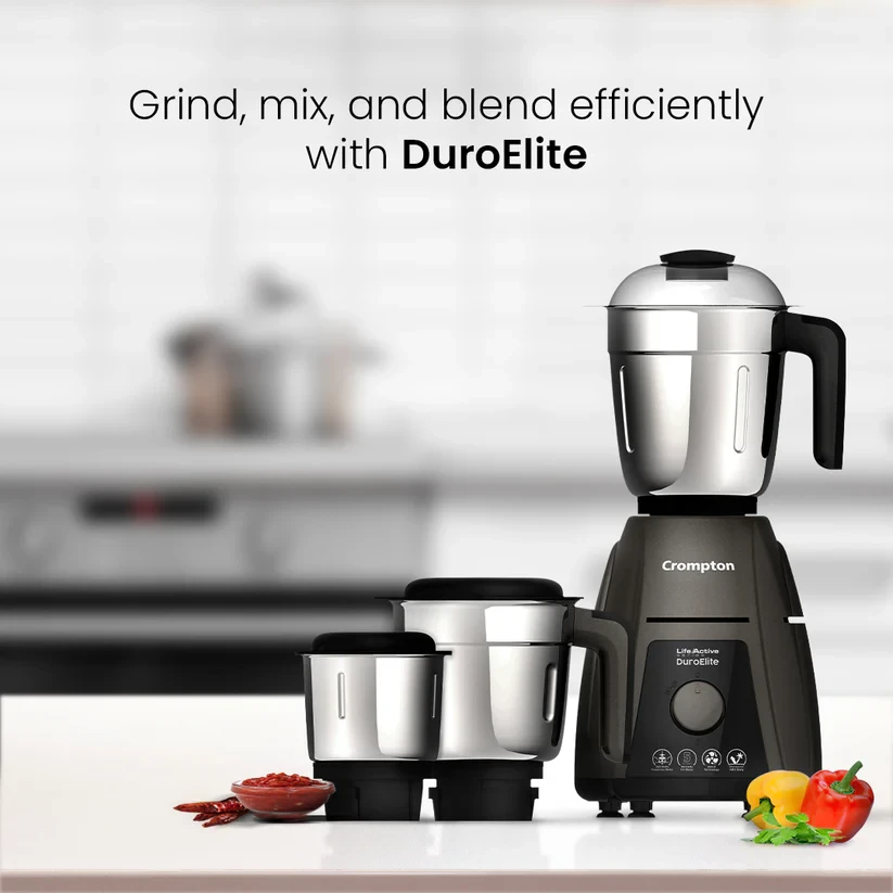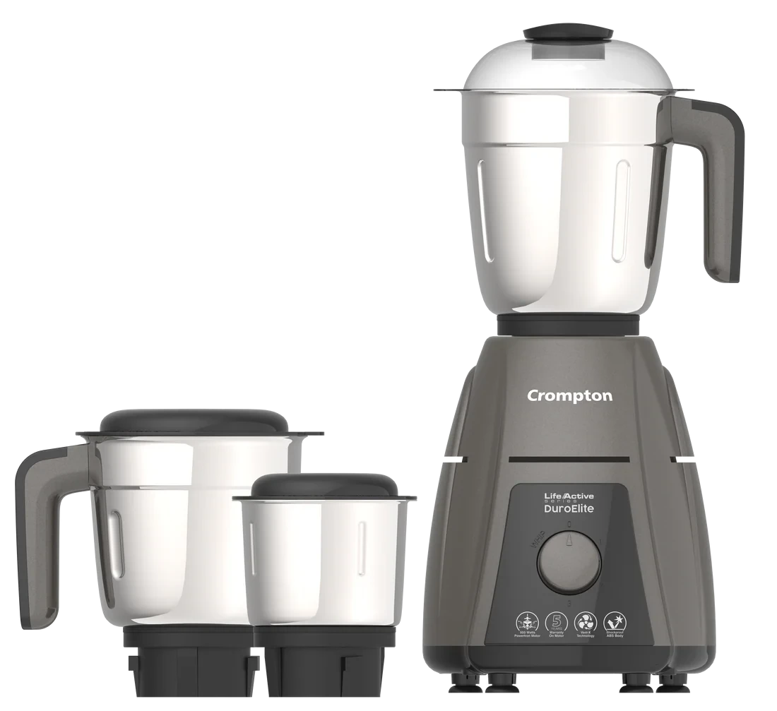 The Crompton DuroElite 800 Watts 3 Jars Mixer Grinder offers a newly designed Powertron motor that delivers a powerful grinding experience. The Mixer grinder is eqipped with an advanced air ventilation system using the Motor Vent-X technology which allows for keeping the grinder cool, even with tough ingredients like black gram. It is easy to clean and the fine blades gives a smooth, lump-free mix to shakes and purees, for a perfect taste! With its glossy finish, it is a perfect companion in your kitchen, adding beautiful and premium aesthetics.