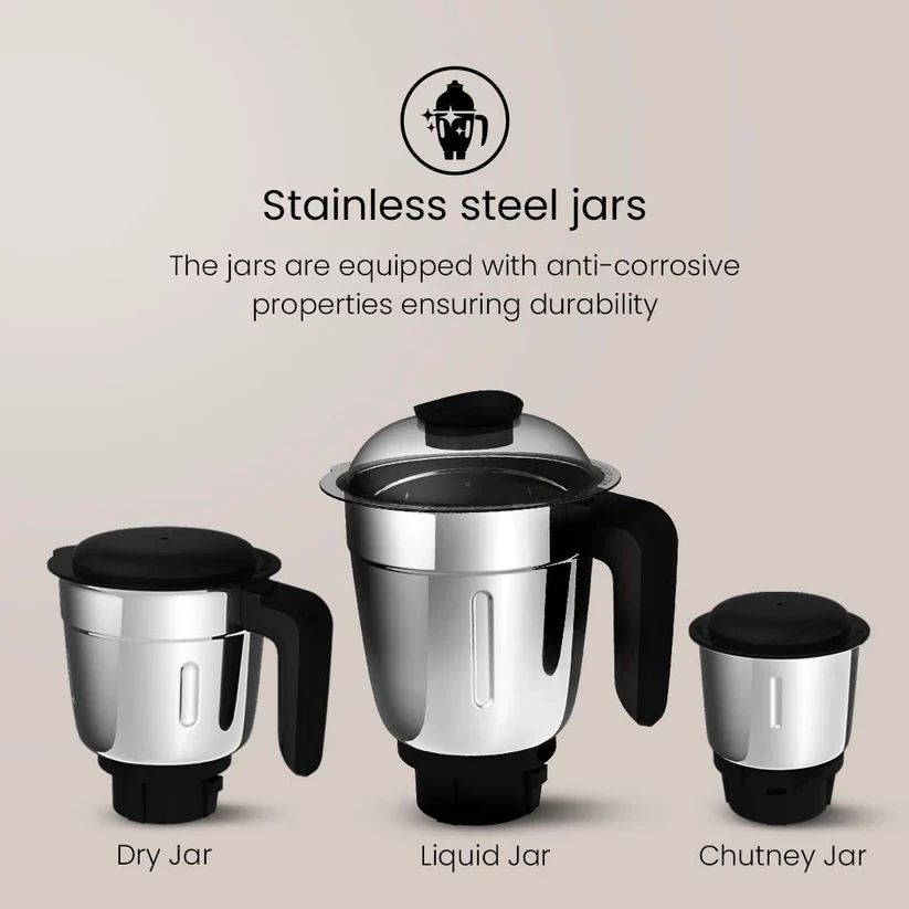 | Included Components | Mixer Grinder, Product Manual, 3 Jars, 3 Lids, 1 Spatula and Warranty Card |