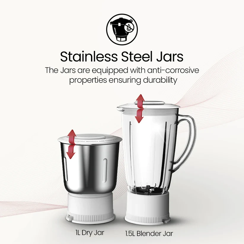 | Included Components | MIXER GRINDER, PRODUCT MANUAL, 3 JARS, 3 LIDS , WARRANTY CARD |