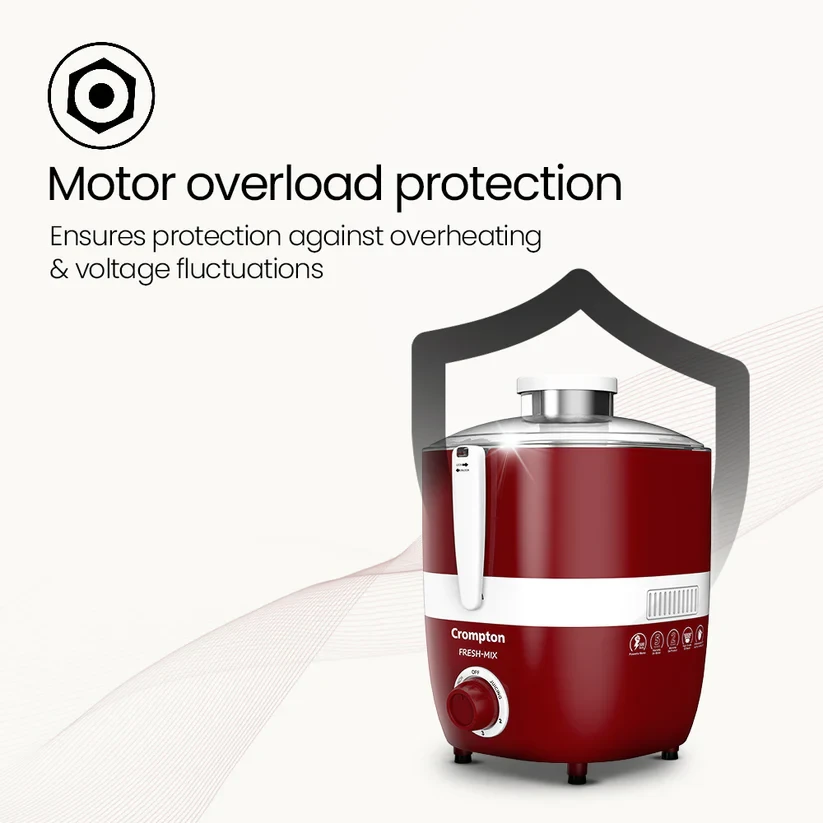 The Crompton Freshmix Juicer Mixer Grinder is a powerhouse in the kitchen, boasting high-grade stainless steel mesh and unbreakable polycarbonate jar lids for exceptional durability. Its anti-drip spout minimizes mess, while the powerful motor with overload protection ensures reliable performance. The leakage-free stainless steel jars add to its functionality, providing a seamless blending experience. Elevate your culinary tasks with the Crompton Freshmix Juicer Mixer Grinder, where durability meets efficiency for superior blending every time.