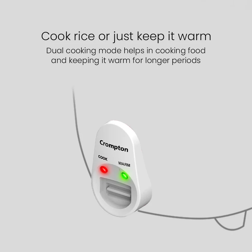 The Crompton Harvest Pro Rice Cooker offers expeditious and efficient rice preparation, achieving the task within a mere 15 minutes. Its food-grade non-stick coating facilitates effortless cleaning, and the dual indicators provide clear notifications for cooking and warming phases. Not only that, the incorporation of cool-touch handles prioritizes safety during handling. Additionally, the dual cook mode enhances versatility, accommodating various rice types with precision. Elevate your culinary practices with the Crompton Harvest Pro.