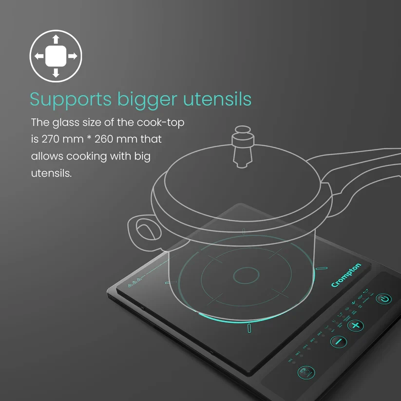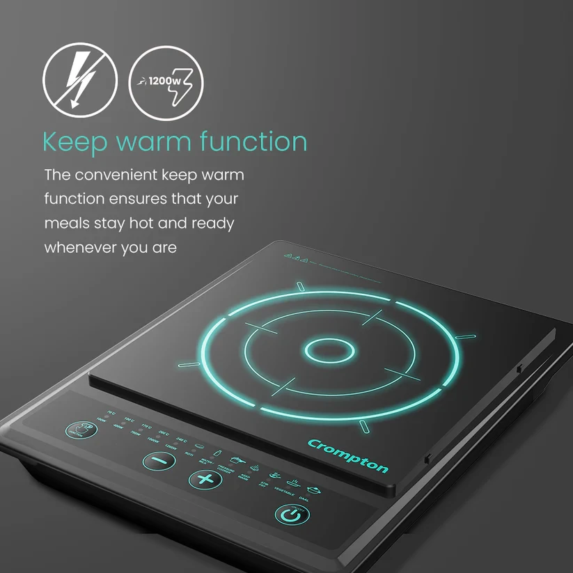 Designed with amazing built quality and power, the Crompton Instaserve Induction Cooktop is equipped with features like auto shutoff, multiple temperature settings and one touch cook menus that makes cooking easier than ever. The convenient Keep Warm fucntion ensures that your meals stay hot and ready whenever you are.