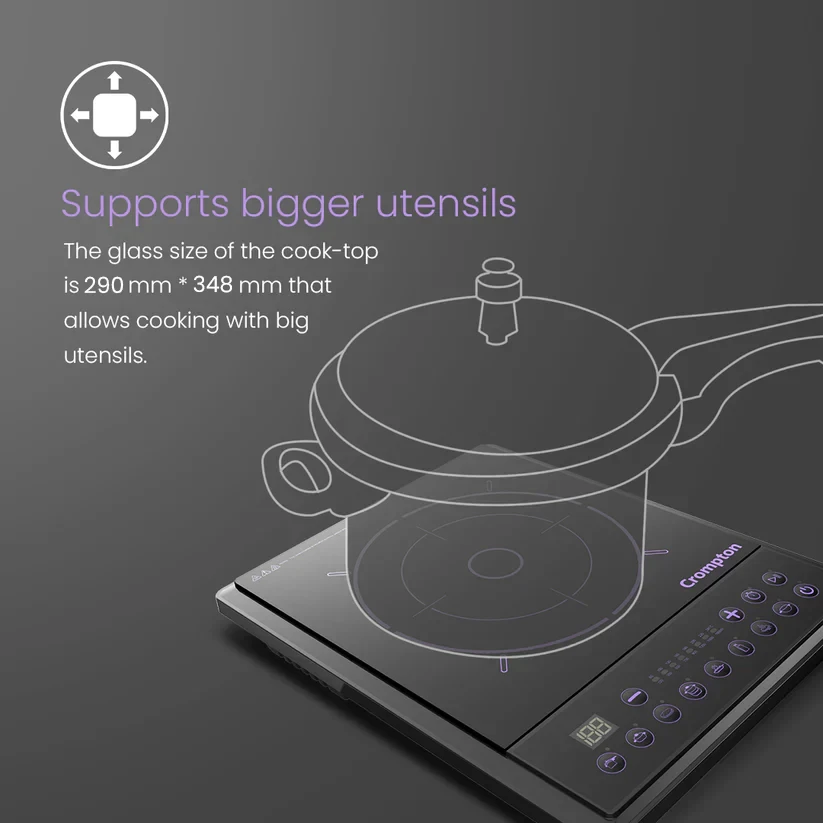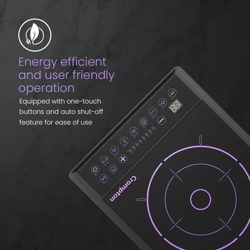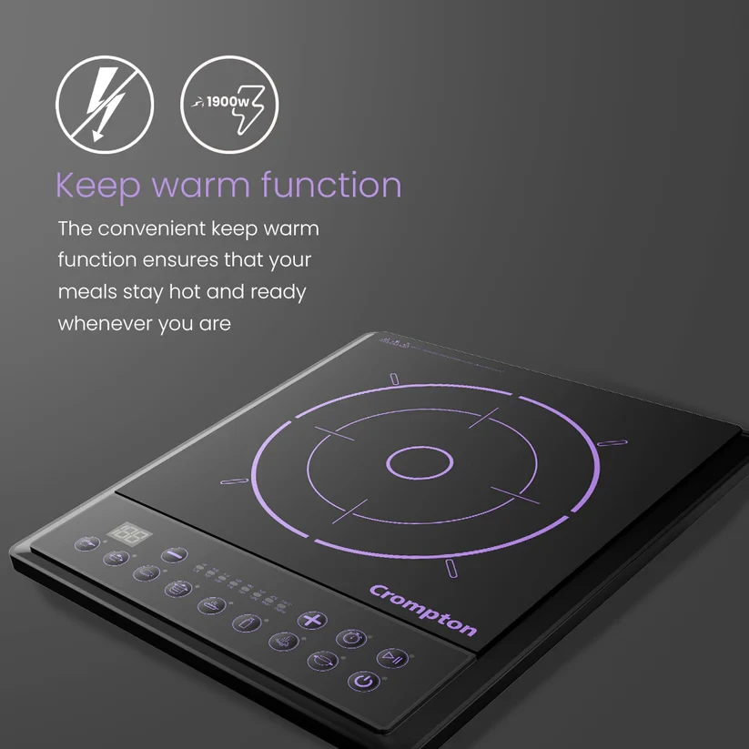 Designed with amazing built quality and power, the Crompton Instaserve Induction Cooktop is equipped with features like auto shutoff, multiple temperature settings and one touch cook menus that makes cooking easier than ever. The convenient Keep Warm fucntion ensures that your meals stay hot and ready whenever you are.