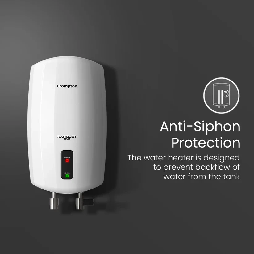 When it's in the name, you can rely on it to instantly provide perfect hot water. Crompton’s Rapid Jet water heaters are aesthetically appealing and performs to please one and all. Their bodies is designed to withstand water pressure and intense heat; therefore, its durability is unquestionable. A consistently delightful experience is guaranteed thanks to the stainless steel tank's reduced risk of leakage and the ISI-marked nickel-coated copper heating element prevention of scale formation. Additionally, these Crompton instant heaters include a capillary thermostat, an automatic thermal cut-off, a pressure release valve, and a fusible plug that provides 4 levels of safety.