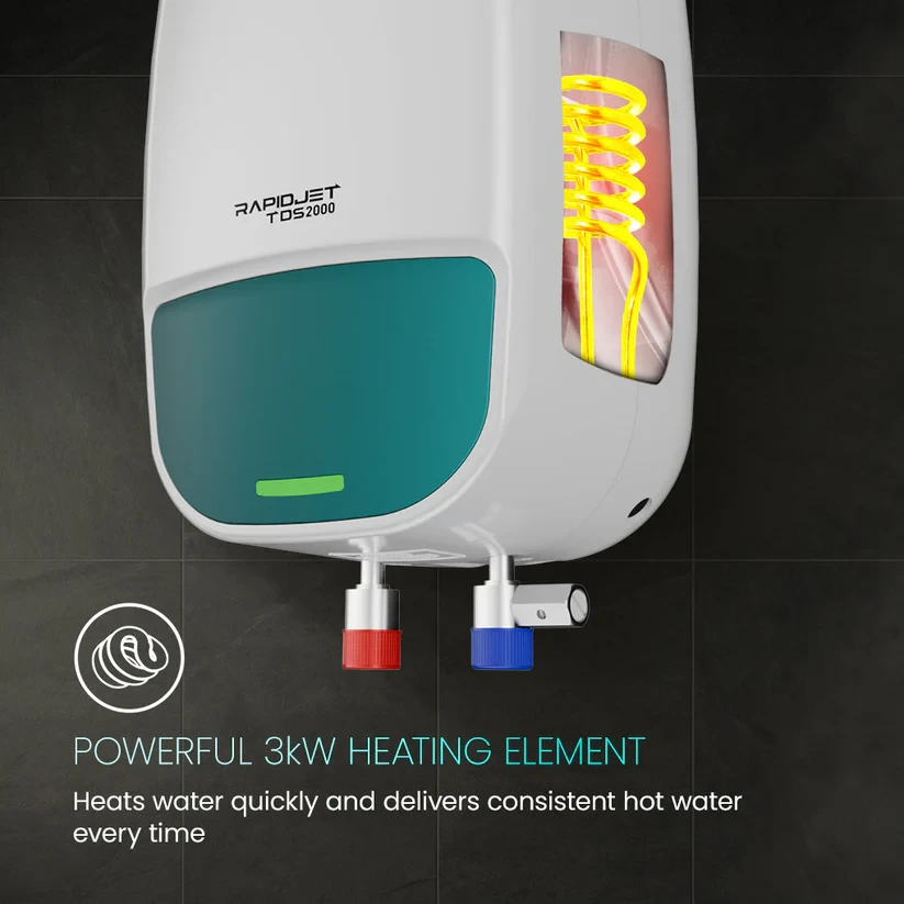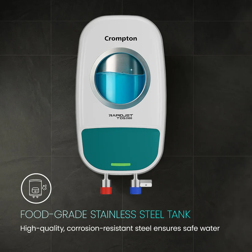 Designed for comfortable mornings and steady performance, the Crompton Rapidjet TDS 2000 Storage water heater delivers hot water the moment you need it. Its powerful heating system heats water quickly, so there’s no waiting around between showers. Built with safety at its core, the advanced multi-level protection quietly works in the background. The food-grade stainless steel tank keeps your water clean and corrosion-free, while the anti-siphon protection prevents damage and extends the life of the heater. Ideal for high-rise homes, it handles high water pressure with ease and performs reliably day after day.