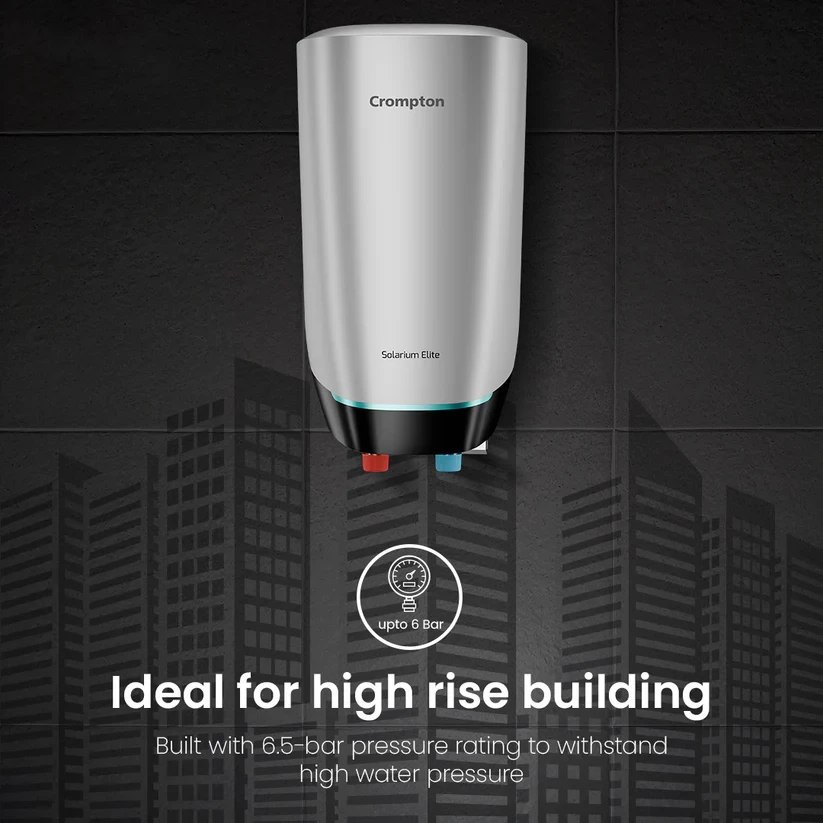 The Crompton Solarium Elite 3-L, 3000W Instant Water Heater offers a seamless blend of style and functionality. Its compact size allows for easy installation even in small spaces, while the sleek white finish ensures it complements any home decor. Equipped with smart LED indicators, it provides a convenient way to monitor the heating process, enhancing your daily routine with modern features. The water heater's rust-proof body not only adds to its durability but also keeps it looking new over time. This water heater combines functionality with style, offering both luxury and dependability. Enjoy a sophisticated yet practical solution for your hot water needs with the Crompton Solarium Elite.