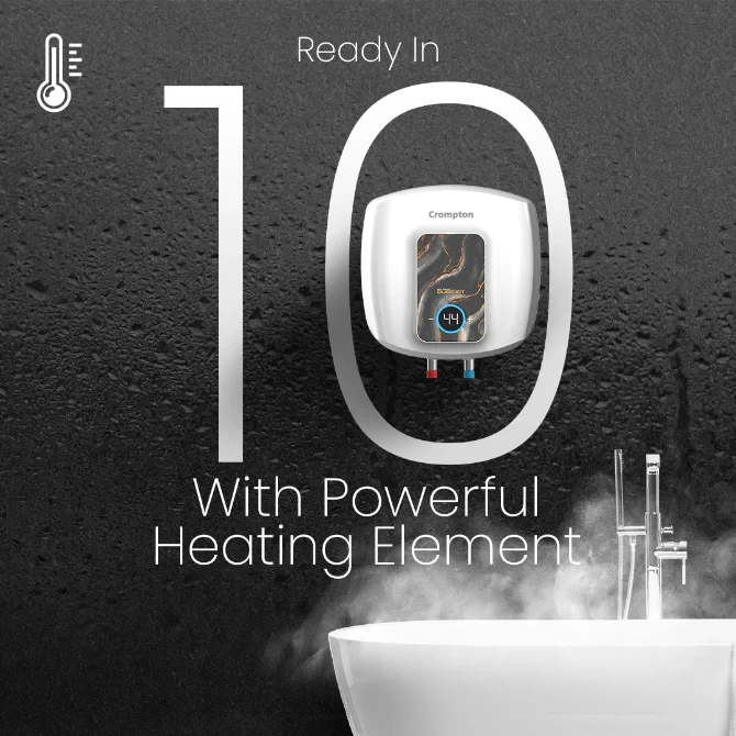 Crompton's Solarium water heaters have it all. The cutting-edge geysers are intelligently designed to consider your bathing and convenience needs. They are a package with customizable bathing modes, voice control, scheduling options, a powerful heating element, enhanced safety features, hygiene mode, and smart shield corrosion. They are resistant to rust, corrosion, and dust and save you money on electricity bills. The modern looks are perfect for enhancing the look of your bathroom.