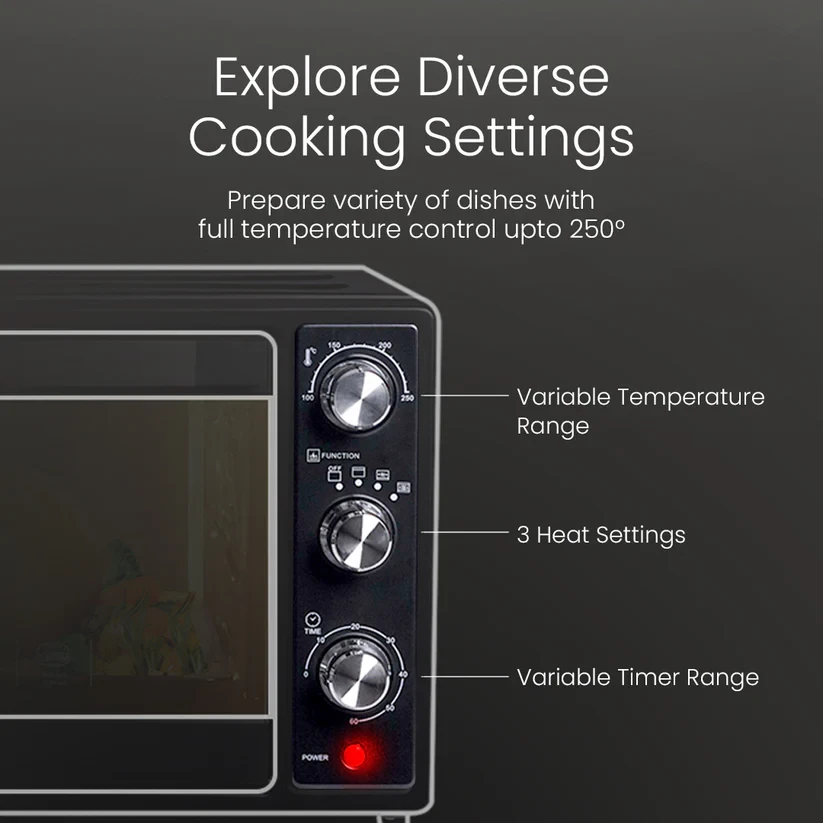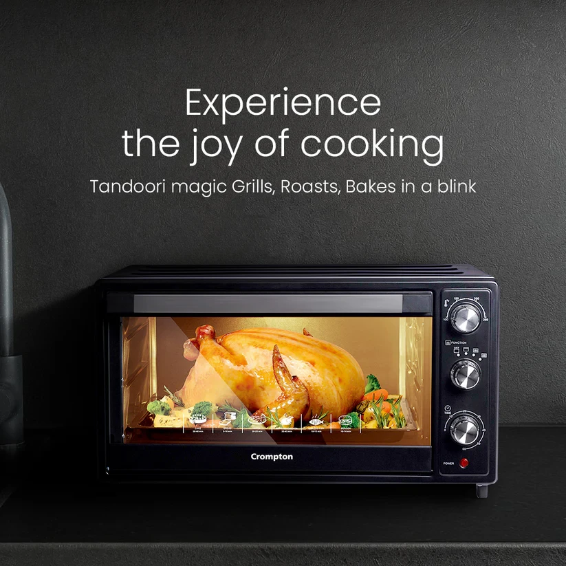 Bring out the tandoori magic in your tikkas and chaats with Crompton Tandoori Magic OTG. The product comes with advanced top & bottom heating technology that evenly cooks your food. Pick from 3 heat settings and customize your cooking experience. The 60-minute timer allows you to multitask without worrying about the food getting burned. Available in 3 capacities 25L, 35L and 45L to suit your requirement.