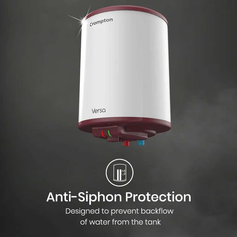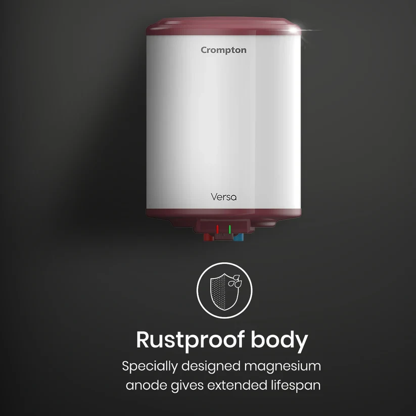 Enter a world of utmost comfort with the Crompton Versa Water Heater. with just a simple twist of a knob, you get the exact water temperature you want. No waiting, just pure instant comfort. Its tank has a special glassline coating which makes this water heater last for years by keeping rust and corrosion away. You will never have to wait long for your water to heat up because its powerful heating mechanism gives you quick and reliable hot water any time, saving you time when you need it most. And while you are enjoying your warm shower, the water heater’s advanced 3 level safety features quietly keeps everything in check, making sure you are always protected. The Crompton Versa Water Heater gives you the peace of mind and comfort you deserve every day.