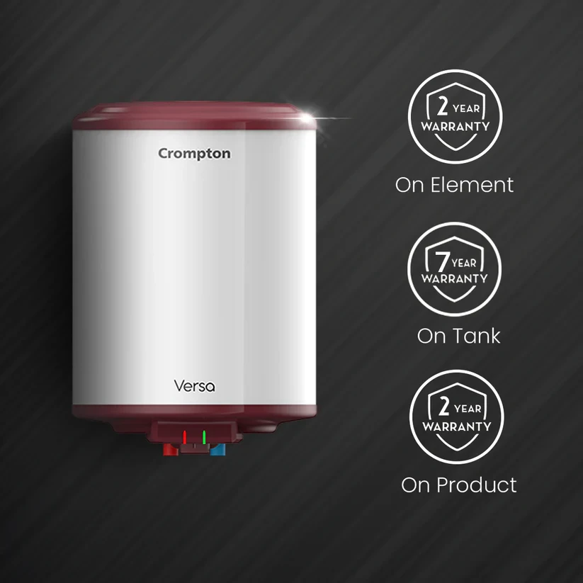 Enter a world of utmost comfort with the Crompton Versa Water Heater. with just a simple twist of a knob, you get the exact water temperature you want. No waiting, just pure instant comfort. Its tank has a special glassline coating which makes this water heater last for years by keeping rust and corrosion away. You will never have to wait long for your water to heat up because its powerful heating mechanism gives you quick and reliable hot water any time, saving you time when you need it most. And while you are enjoying your warm shower, the water heater’s advanced 3 level safety features quietly keeps everything in check, making sure you are always protected. The Crompton Versa Water Heater gives you the peace of mind and comfort you deserve every day.