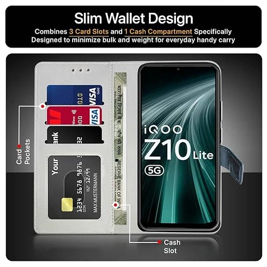 1. Precisely Crafted For Vivo T4 lite 5G | iQOO Z10 lite 5G | Y04 4G | Y19 5G | Y19e - Premium Vegan Leather Flip Back Case Cover