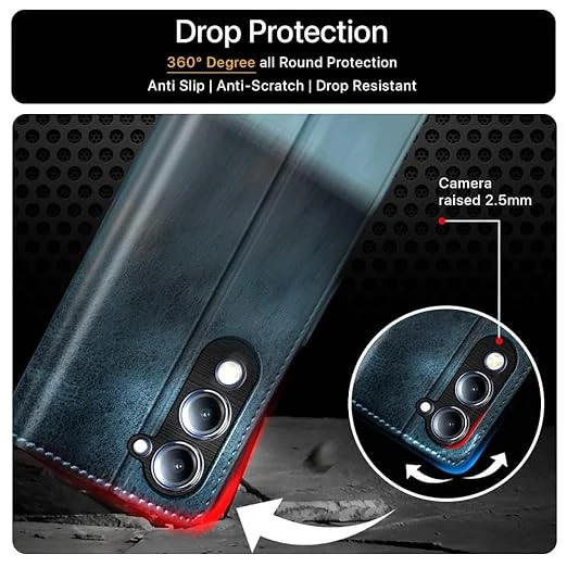 Pikkme Oppo F23 5G Flip Cover Leather Finish | Inside TPU with Card Pockets | Wallet Stand and Shock Proof | Complete Protection Flip Case