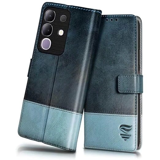 FLIPPED Vegan Leather Flip Case Back Cover for Vivo T4x 5G | iQoo Z10x 5G | Vivo Y31 Pro 5G (Flexible, Shock Proof | Hand Stitched Leather Finish | Card Pockets Wallet & Stand | Blue with Aquamarine) Visit the FLIPPED Store