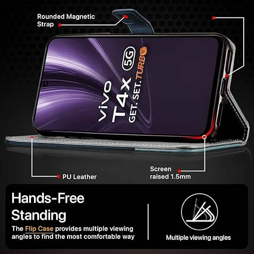 1. Precisely Crafted For Vivo T4x 5G | iQoo Z10x 5G | Vivo Y31 Pro 5G - Premium Vegan Leather Flip Back Case Cover