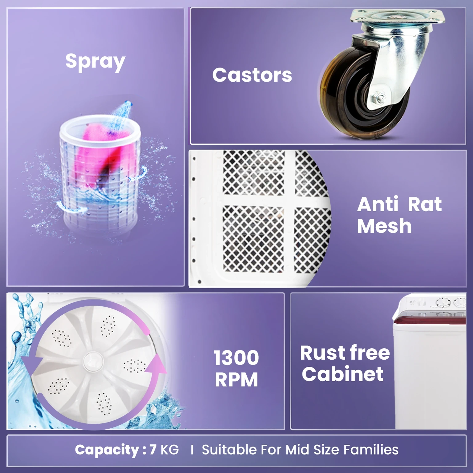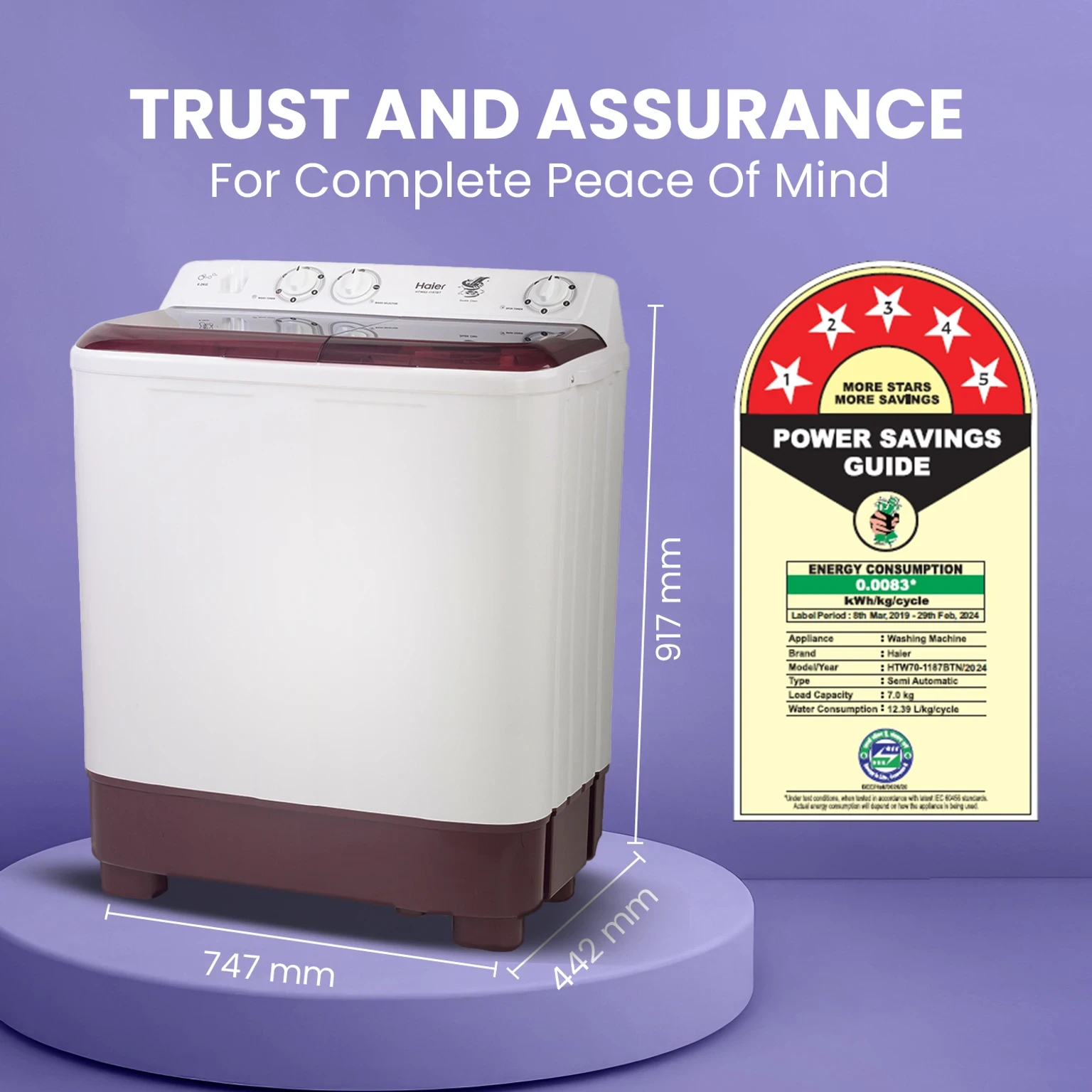 Haier 7 Kg Semi-Automatic Washing Machine HTW70-1187BTN