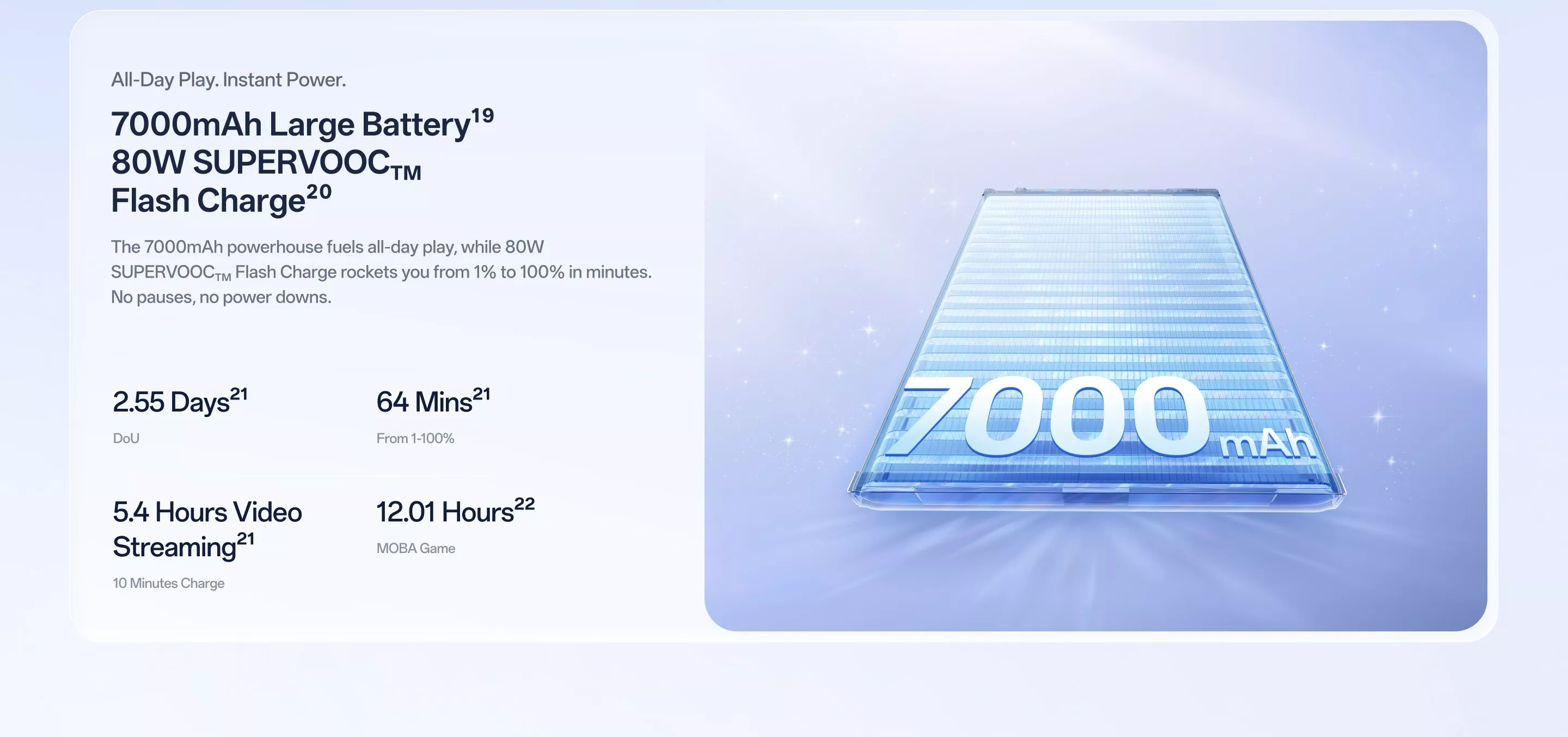 Battery: Large 7000 mAh battery with 80 W SUPERVOOC fast charging support