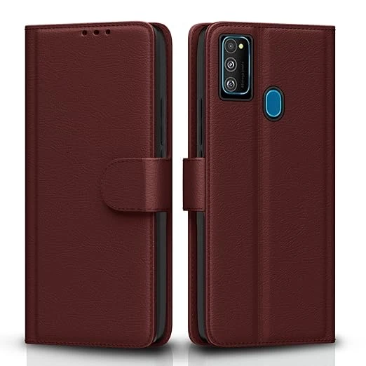 Pikkme Flip Cover for Samsung Galaxy M30s / M21 / M21 2021 Leather Finish | Inside TPU with Card Pockets | Wallet Stand and Shock Proof | Complete Protection Flip Case(Brown)