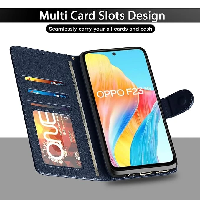 Pikkme Oppo F23 5G Flip Cover Leather Finish | Inside TPU with Card Pockets | Wallet Stand and Shock Proof | Complete Protection Flip Case