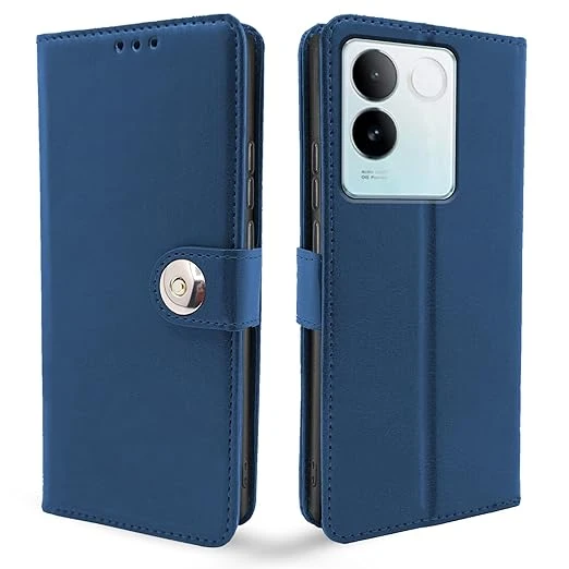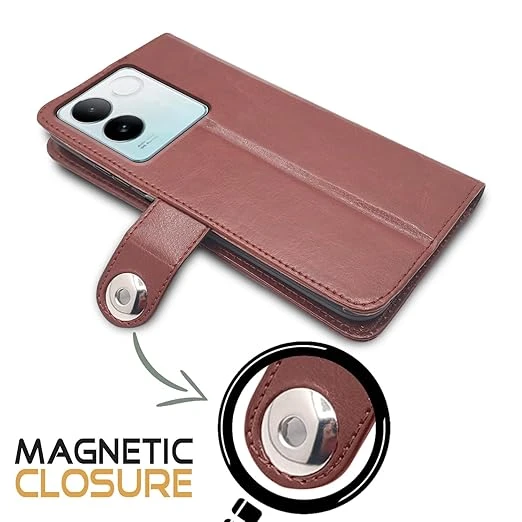 Pikkme Vivo T2 pro 5G Flip Cover Leather Finish | Inside TPU with Card Pockets | Wallet Stand and Shock Proof | Complete Protection Button Flip Case