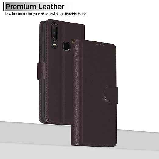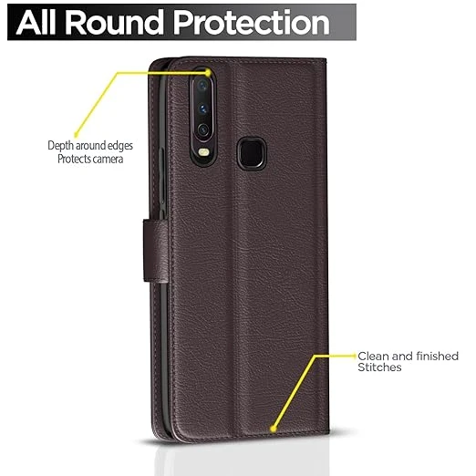 Pikkme Vivo Y12 / Y15 /Y17 / U10 Flip Case Leather Finish | Inside TPU with Card Pockets | Wallet Stand and Shock Proof | Magnetic Closing | Complete Protection Flip Cover