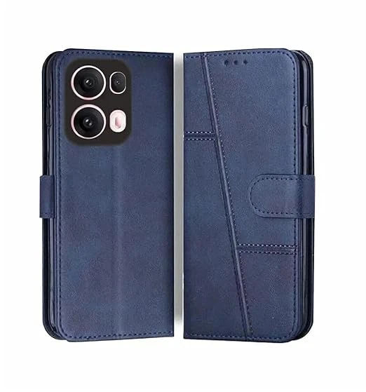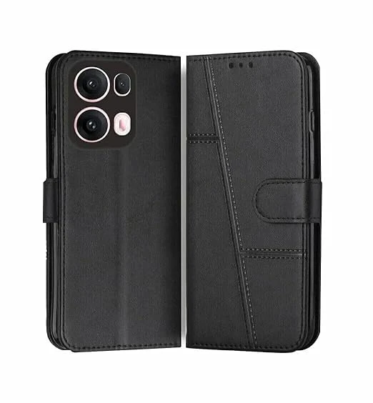 FLIPPED Vegan Leather Flip Case Back Cover for Oppo Reno 14 5G (Flexible, Shock Proof | Hand Stitched Leather Finish | Card Pockets Wallet & Stand