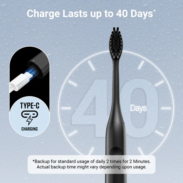 | Charge lasts upto 40Days* (2 Mins x 2 Times a day) | |