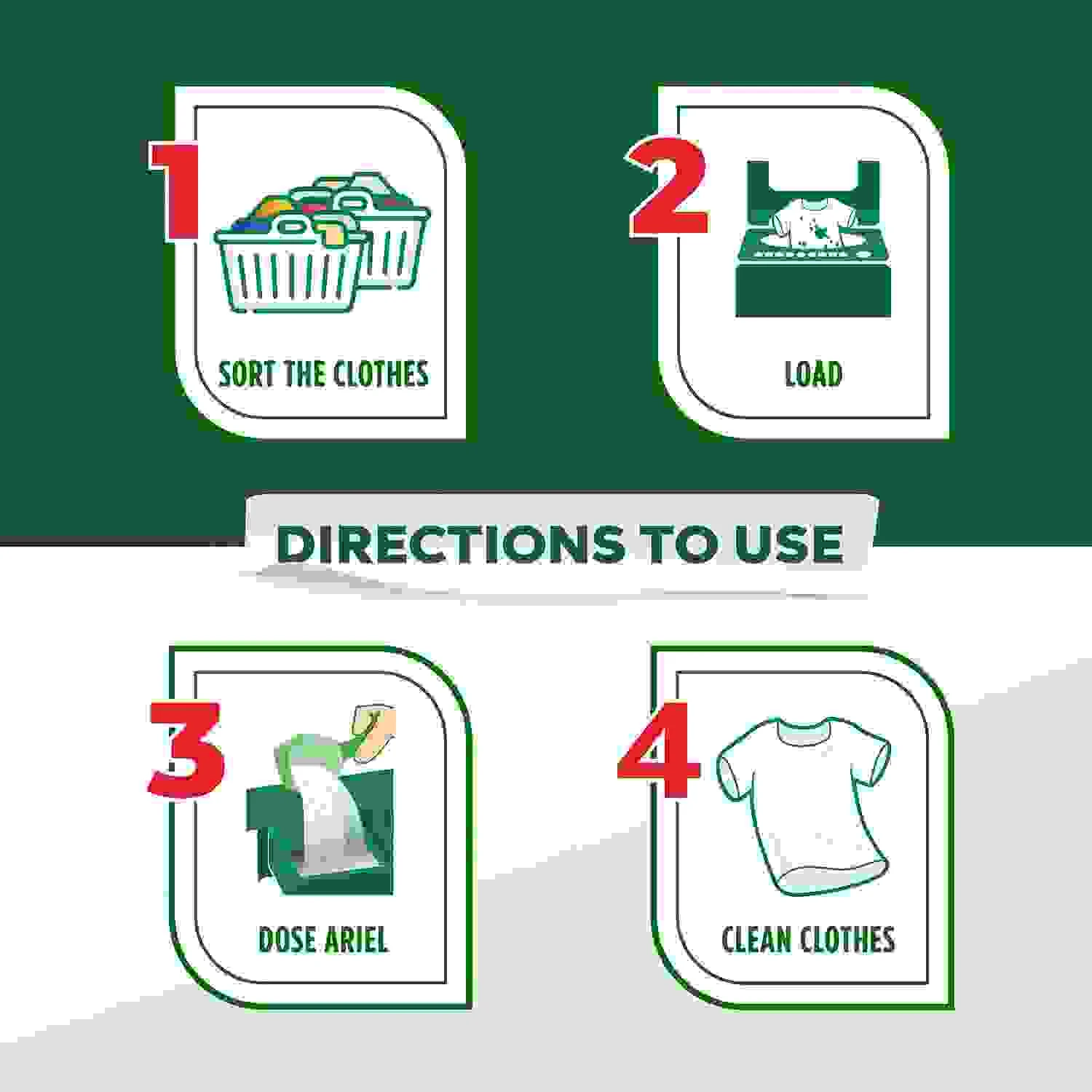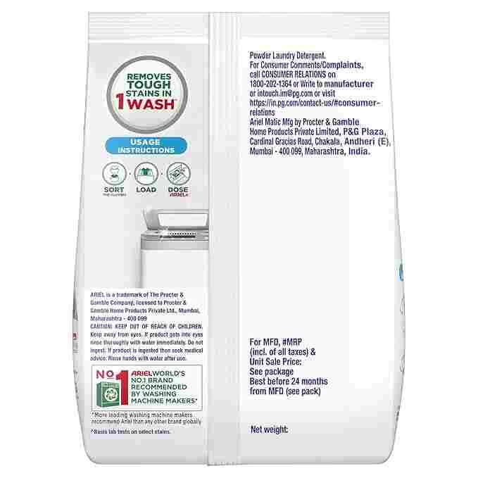 New & Improved Ariel Matic gives you tough stain removal for a bright clean in just 1 wash. Especially designed to be used in front loading machines, Ariel Matic Front Load offers brilliant stain removal for full loads. The new Brightguard technology keeps your clothes bright wash after wash. Ariel Matic powder also provides deep down cleaning and long-lasting freshness. Formulated specifically for fully automatic washing machines, it generates the right amount of foam in the machine to deliver superior cleaning inside the machine itself, without damaging the machine due to excess foam. It requires just 1 scoop for normal loads, and 1.5 scoops for heavy loads, providing performance along with value. Ariel Matic’s cutting edge technology provides impeccable cleaning for all your clothes, and removes tough stains like juice, chocolate, tomato and butter/ghee and maintains the brightness of the clothes. So now, goodbye stains and dullness!