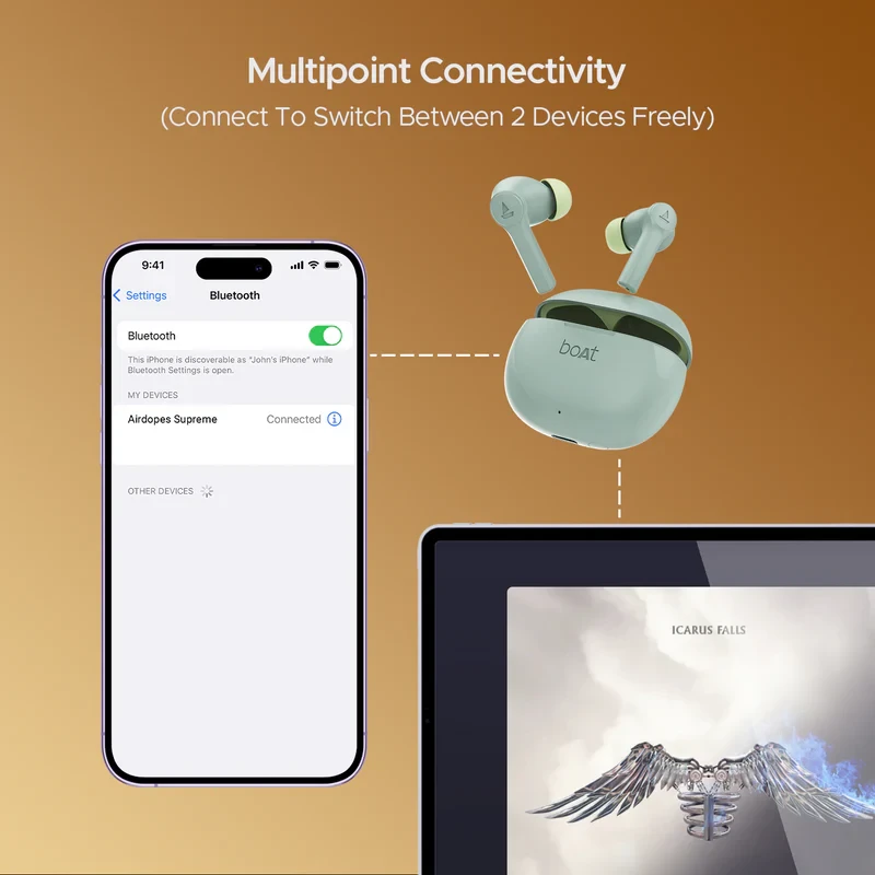 12+3 Months Warranty i 7-day Replacement Free Express Delivery* GST Billing Description Reviews (192) BEAST™ Mode Multi-point Connectivity ASAP™ Charge 50 Hours Playtime Product Specifications Name boAt Airdopes Supreme Category Wireless Earbuds Net Content 1 UNIT boAt Airdopes Supreme, 1 UNIT Type-C Cable, 1 UNIT User Guide, 2 UNITS Extra Earmuffs Product Dimensions 35.21mm x 17.83mm x 21.37mm MRP(Inclusive All Taxes) ₹5,990 Country Of Origin India Marketed By Imagine Marketing Limited, Unit No. 204 & 205, 2nd floor, D-Wing & E- wing, Corporate Avenue, Andheri Ghatkopar Link Road, Andheri East, Mumbai - 400093 Manufactured by Califonix Tech & Manufacturing Pvt. Ltd., B-17, Sector 85, Phase II, Noida, Gautam Buddha Nagar, Uttar Pradesh-201305, India. For consumer complaints contact us at: 022-6918-1920 info@imaginemarketingindia.com Imagine Marketing Limited Address: Unit No. 204&205, D-wing & E-wing, Corporate Avenue, Andheri Ghatkopar Link Road, Andheri East, Mumbai-400093 Net Quantity 1 Unit IPX IPX4 Driver Size 10mm*2 Charging Time 1.5 Hours (Case); 30 Mins (Earbuds) Bluetooth v5.2 Beast Mode Yes BEAST™ Mode 65ms Low Latency ASAP Charge Yes; 10mins = 150mins Noise Cancellation 4 mics ENx™ Technology