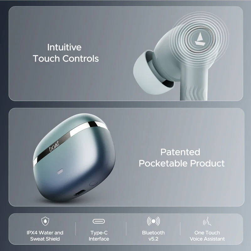 12+3 Months Warranty i 7-day Replacement Free Express Delivery* GST Billing Description Reviews (294) Nonstop music upto 120 hours IPX4 Sweat & water resistance quad mics with ENxTM Technology ASAPTM Fast charge Product Specifications Name boAt Nirvana Ion ANC Category Wireless Earbuds Net Content 1 Unit Pair of Earbuds, 1 Unit Case, 1 Unit Type - C Cable, 1 Unit User Manual, 1 Unit Warranty Card, 1 Unit Catalogue, 1 Unit FAQ Card Product Dimensions 21.7mm x 24.8mm x 32.8mm MRP(Inclusive All Taxes) ₹9,990 Country Of Origin India Marketed By Imagine Marketing Limited, Unit No. 204 & 205, 2nd floor, D-Wing & E- wing, Corporate Avenue, Andheri Ghatkopar Link Road, Andheri East, Mumbai - 400093 Manufactured by Califonix Tech & Manufacturing Pvt. Ltd., B-17, Sector 85, Phase II, Noida, Gautam Buddha Nagar, Uttar Pradesh-201305, India. For consumer complaints contact us at: 022-6918-1920 info@imaginemarketingindia.com Imagine Marketing Limited Address: Unit No. 204&205, D-wing & E-wing, Corporate Avenue, Andheri Ghatkopar Link Road, Andheri East, Mumbai-400093 Net Quantity 1 Unit IPX IPX4 Driver Size 10mm*2 Charging Time 2.5 Hours(Case); 1 Hour(Earbuds) Bluetooth V5.2 Beast Mode Yes BEAST™ Mode 60ms Latency Noise Cancellation Up to 32dB ANC