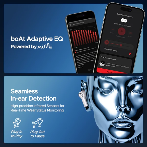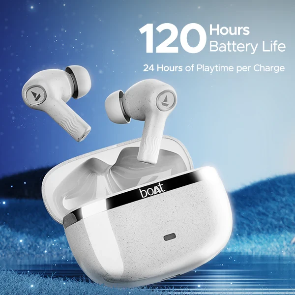 12+3 Months Warranty i 7-day Replacement Free Express Delivery* GST Billing Description Reviews (294) Nonstop music upto 120 hours IPX4 Sweat & water resistance quad mics with ENxTM Technology ASAPTM Fast charge Product Specifications Name boAt Nirvana Ion ANC Category Wireless Earbuds Net Content 1 Unit Pair of Earbuds, 1 Unit Case, 1 Unit Type - C Cable, 1 Unit User Manual, 1 Unit Warranty Card, 1 Unit Catalogue, 1 Unit FAQ Card Product Dimensions 21.7mm x 24.8mm x 32.8mm MRP(Inclusive All Taxes) ₹9,990 Country Of Origin India Marketed By Imagine Marketing Limited, Unit No. 204 & 205, 2nd floor, D-Wing & E- wing, Corporate Avenue, Andheri Ghatkopar Link Road, Andheri East, Mumbai - 400093 Manufactured by Califonix Tech & Manufacturing Pvt. Ltd., B-17, Sector 85, Phase II, Noida, Gautam Buddha Nagar, Uttar Pradesh-201305, India. For consumer complaints contact us at: 022-6918-1920 info@imaginemarketingindia.com Imagine Marketing Limited Address: Unit No. 204&205, D-wing & E-wing, Corporate Avenue, Andheri Ghatkopar Link Road, Andheri East, Mumbai-400093 Net Quantity 1 Unit IPX IPX4 Driver Size 10mm*2 Charging Time 2.5 Hours(Case); 1 Hour(Earbuds) Bluetooth V5.2 Beast Mode Yes BEAST™ Mode 60ms Latency Noise Cancellation Up to 32dB ANC
