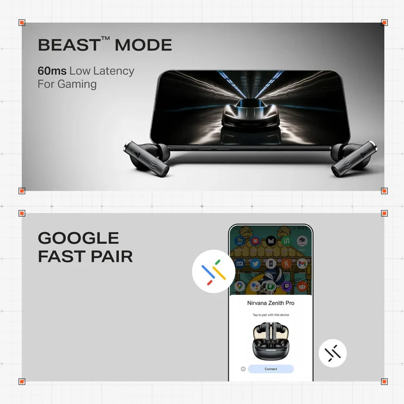12+3 Months Warranty i 7-day Replacement Free Express Delivery* GST Billing Description Reviews (21) Product Specifications Name boAt Nirvana Zenith Pro Category Wireless Earbuds Net Content 1 Unit Pair of Earbuds, 1 Unit Case, 1 Unit Type - C Cable, 1 Unit User Guide, 2 Extra Earmuffs Product Dimensions 31mm x 25mm x 20mm MRP(Inclusive All Taxes) ₹14,990 Country Of Origin Vietnam Imported And Marketed By Imagine Marketing Limited, Unit No. 204 & 205, 2nd floor, D-Wing & E- wing, Corporate Avenue, Andheri Ghatkopar Link Road, Andheri East, Mumbai - 400093 For consumer complaints contact us at: 022-6918-1920 info@imaginemarketingindia.com Imagine Marketing Limited Address: Unit No. 204&205, D-wing & E-wing, Corporate Avenue, Andheri Ghatkopar Link Road, Andheri East, Mumbai-400093 Net Quantity 1 Unit IPX IPX4 Driver Size 12mm*2 Charging Time 1 Hr 50 Mins (Case) & 35 Mins (Earbuds) Bluetooth V5.4 Beast Mode Yes BEAST™ Mode 60ms low latency ASAP Charge Yes; 10mins = 250mins Noise Cancellation ANC Up to 50dB