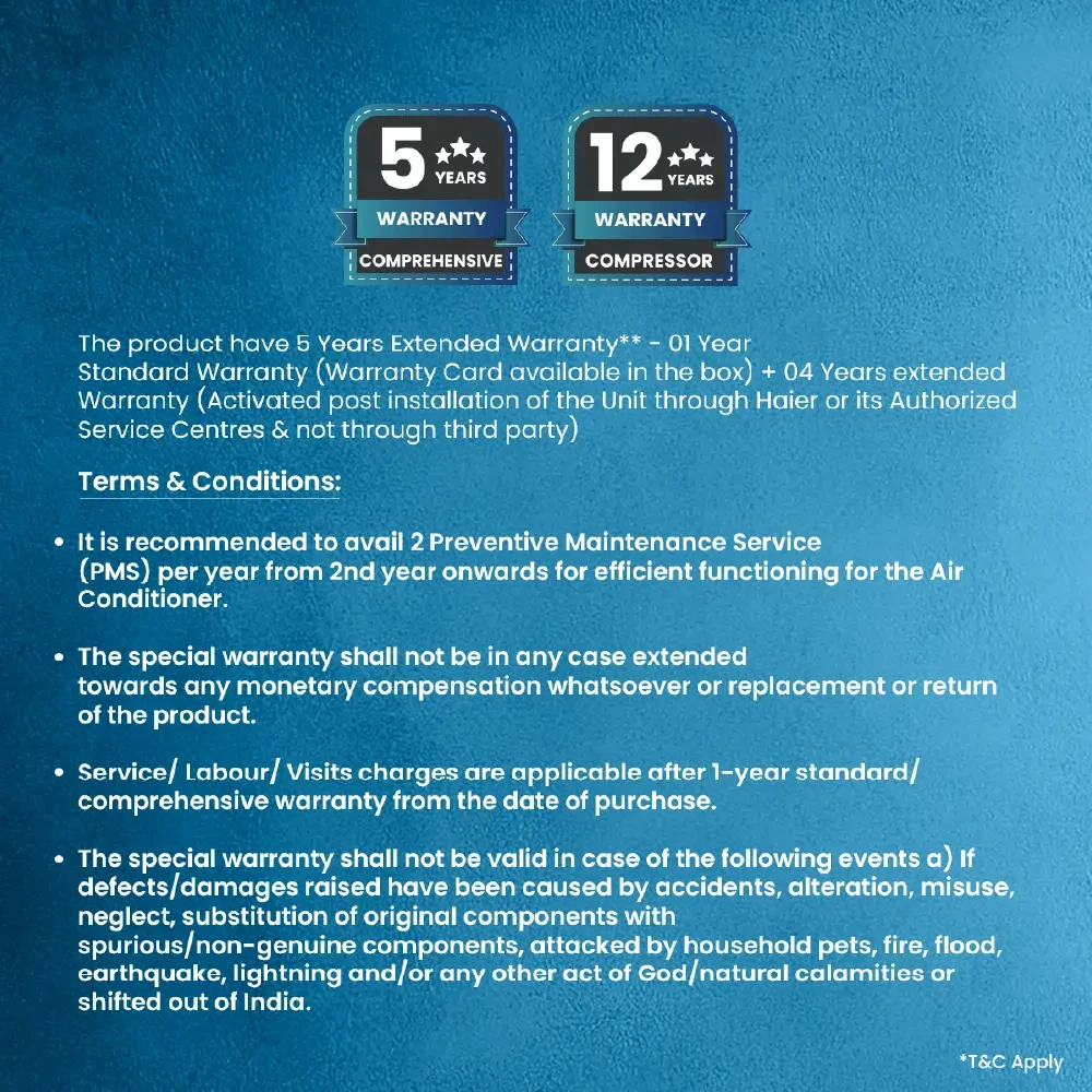 12. Other Features: Hyper & Stronger PCB; 100% Grooved Copper, Super Anti Corrosion with Indoor & Outdoor Blue Fins, Super Anti-Microbial Filter